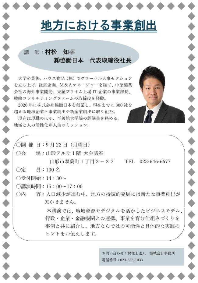 令和7年9月22日に拡大利他の会と題しまして、利他の会会員様の他に関与先様やにご参加いただき研修会を開催いたしました。講師には 株式会社協働日本 代表取締役社長 村松知幸様をお招きしてご講演いただきました。